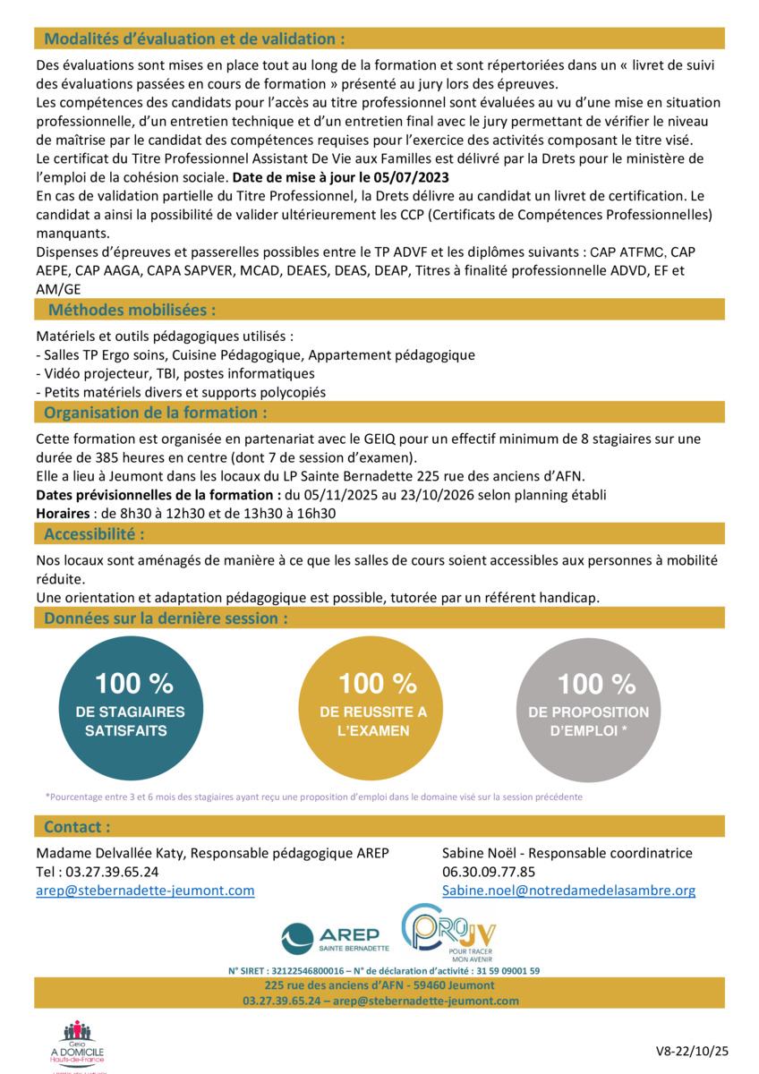 Le certificat du Titre Professionnel Assistant De Vie aux Familles est délivré par la Drets pour le ministère de l’emploi de la cohésion sociale. Date de mise à jour le 05/07/2023