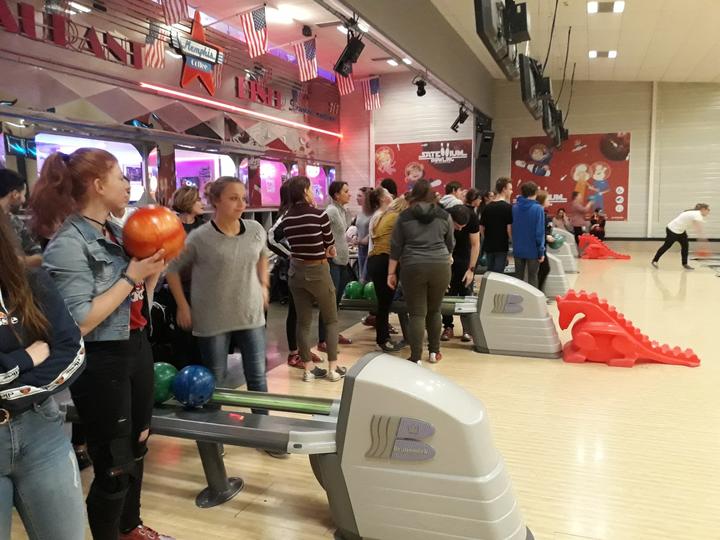 Après un repas partagé avec les professeurs, les lycéens se sont rendus au Bowling pour une après-midi détente.