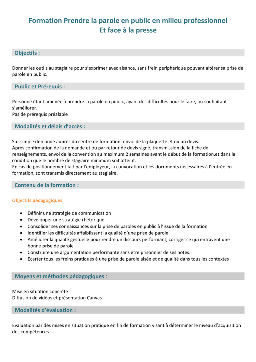 Donner les outils au stagiaire pour s’exprimer avec aisance, sans frein périphérique pouvant altérer sa prise de parole en public.
