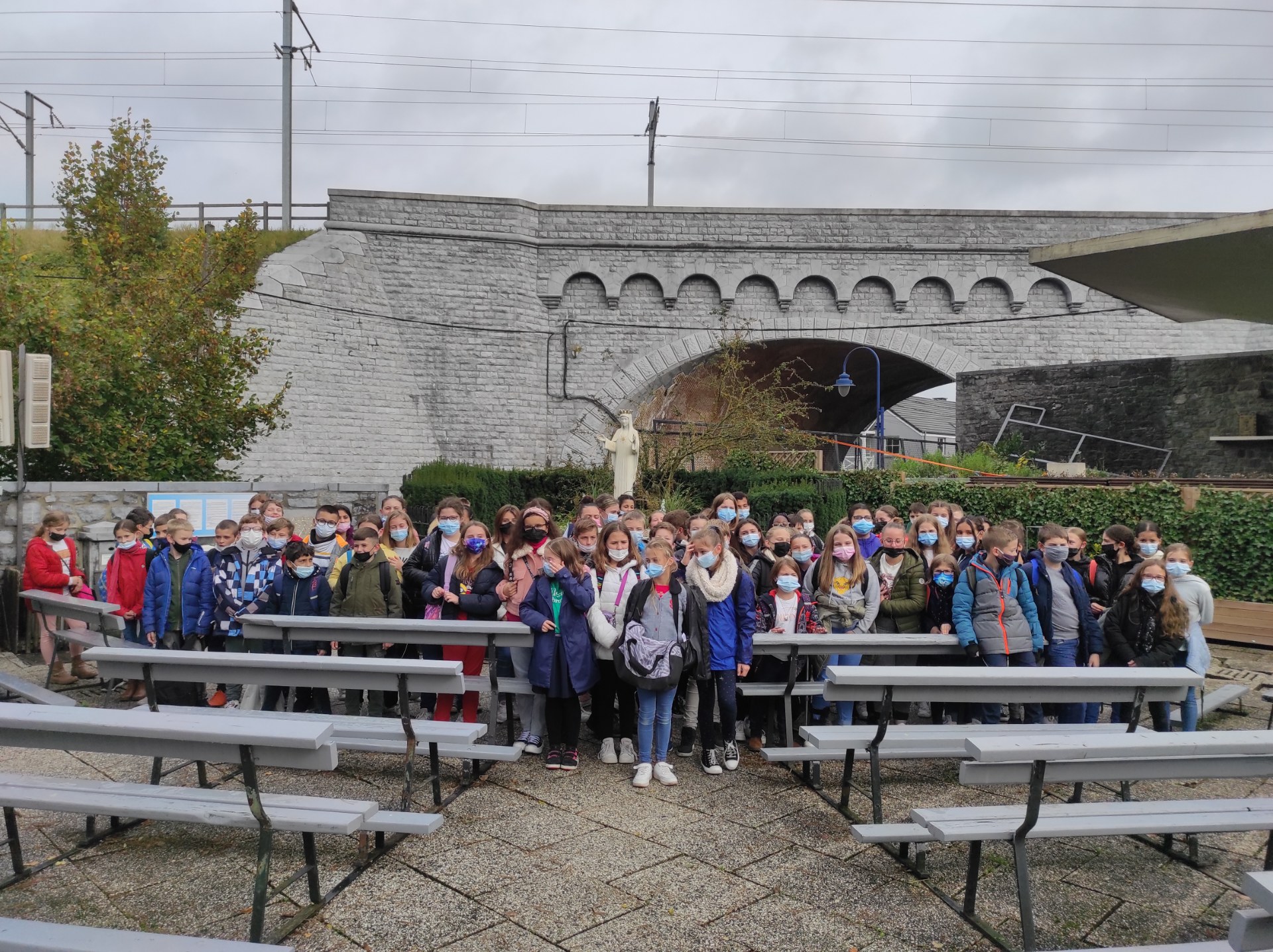 Après la célébration dans le rosaire du sanctuaire de Beauraing, les élèves ont visionné un film relatant l'histoire des apparitions de la Vierge à cinq enfants du village du 29 novembre 1932 au 3 janvier 1933.