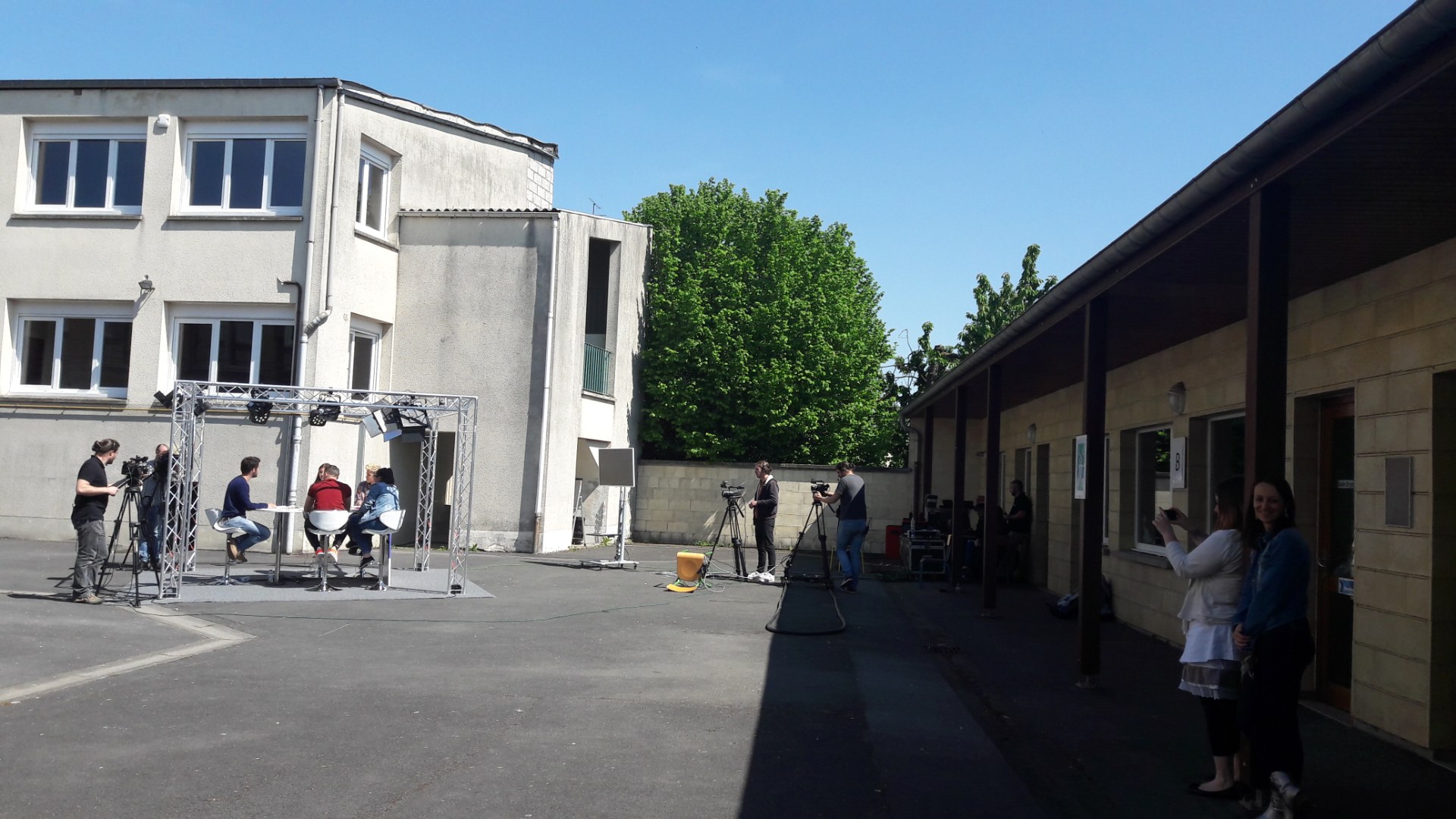 Pour l’occasion, la cour du lycée s’est transformée en véritable plateau de tournage. Ce fut un grand moment de joie et de fierté pour l’ensemble de nos lycéens.